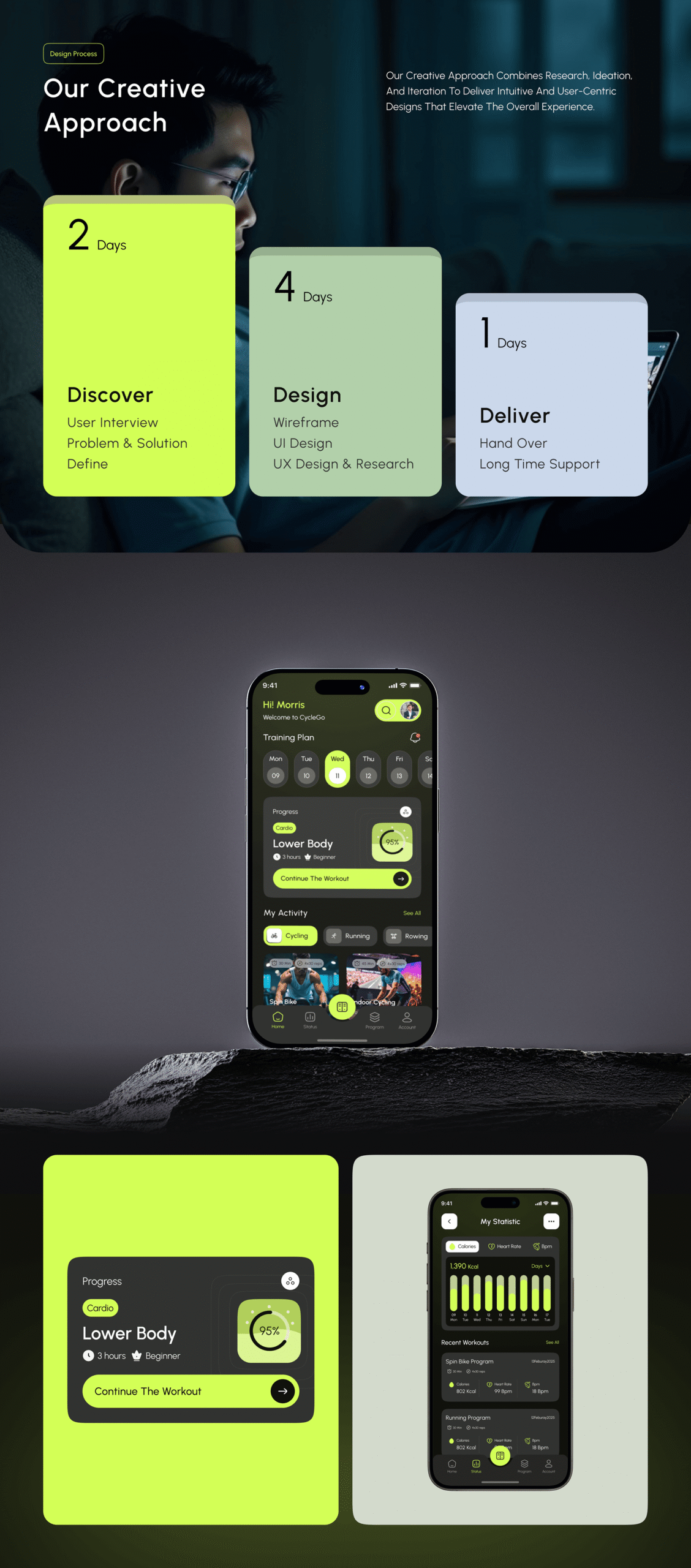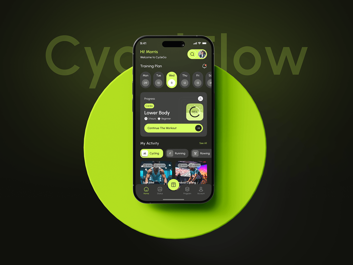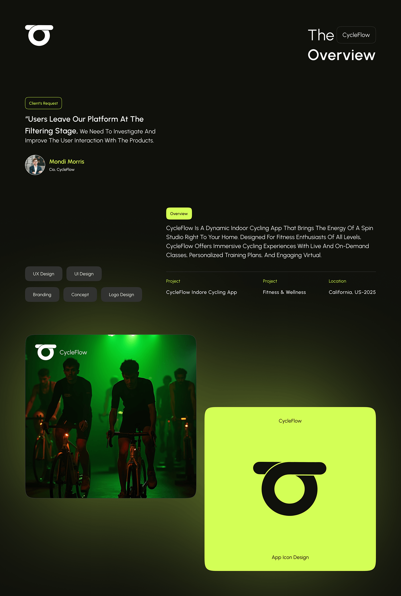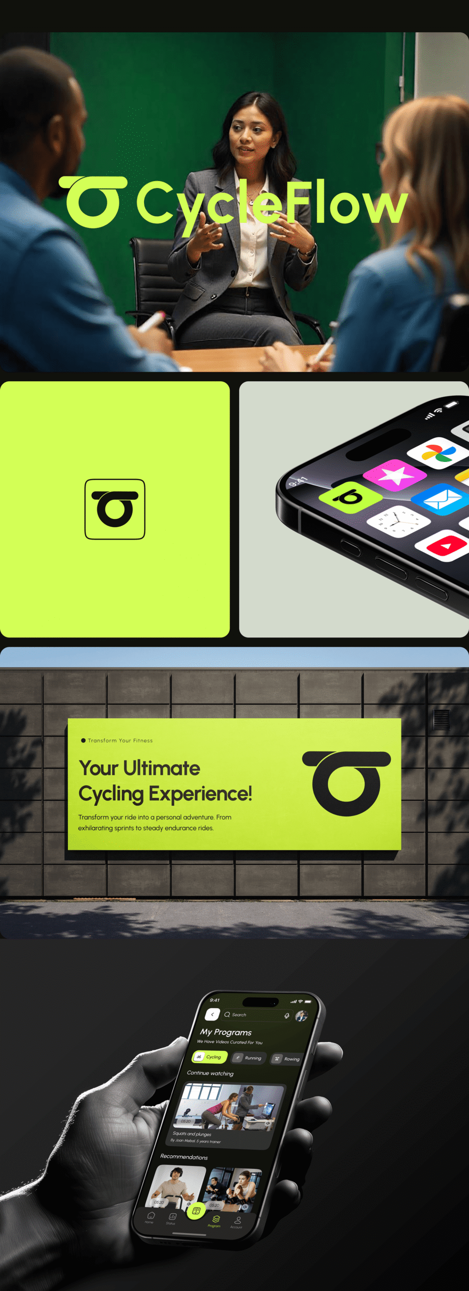 We developed a brand identity that captures Cycleflow’s vibrant energy and forward motion. The visuals reflect both the intensity of a studio ride and the accessibility of at-home fitness β€” bold, modern, and built to inspire every pedal forward.