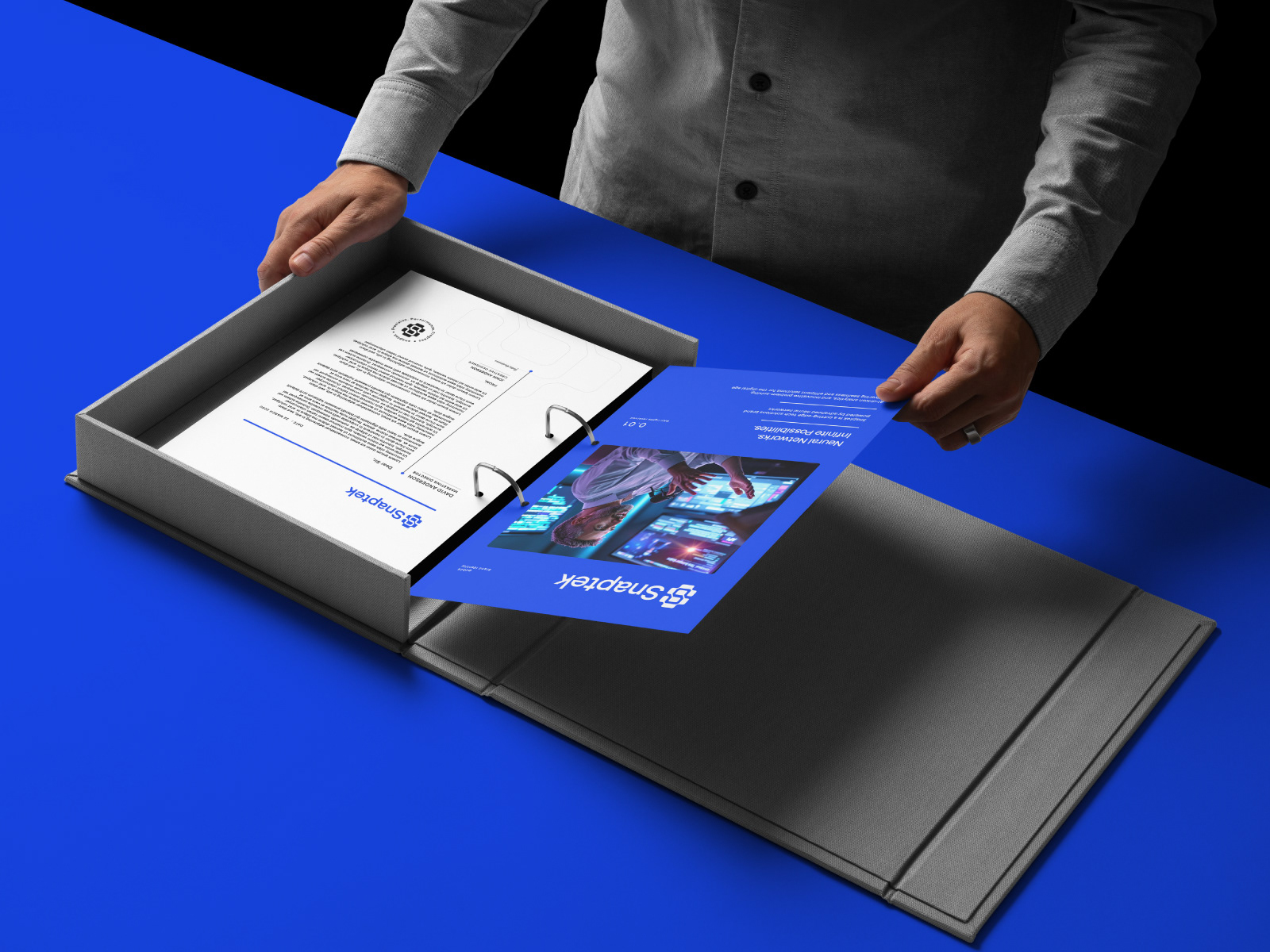 For this project, We worked on crafting a modern and strategic brand identity that reflects Snaptekβs innovation and intelligence. The visual direction was designed to convey precision, clarity, and tech sophistication β aligning with their mission to provide smart, scalable solutions for the future.